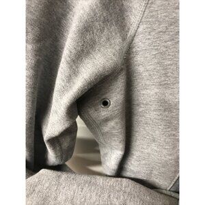 In very good shape overall, HOWEVER the ribbed cuffs have been removed and gathered with elastic (pictured). Lots of life left in this comfy, grey sweatshirt. Grommets at the armpits for ventilation, media pocket on left arm, and a cowl neck make it very practical too.