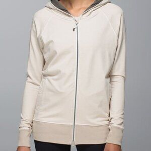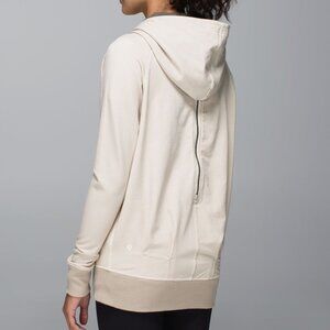 Lightweight hoodie, size 4, more of an oversized look. Lululemon Rollin with my Omies. Mohave tan and black in the hood. Back vent. Preowned, but not worn out.