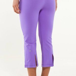 Lululemon Gather & Crow Crop Leggings, Purple- Size 6. Slight flare and split leg in the back. Capri length.