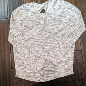 Great condition long sleeve with large keyhole back. Fits about a medium (I am typically size 6 in tops and this fits great).