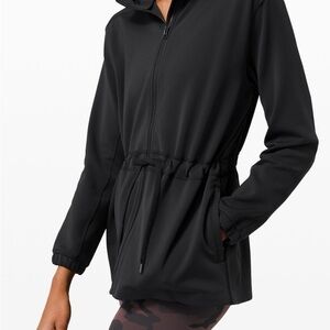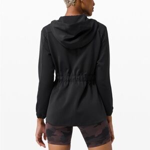 With underarm eyelets, a scooped hem, and a back-gathered waistband, this jacket was designed to make bike commutes comfortable.