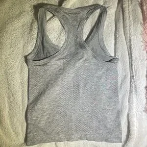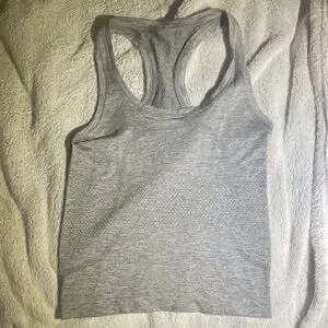 Stylish gray racerback tank top. Perfect for casual wear, cheer, running or any sport!! Super cute amazing quality and it’s so soft, the texture is incredible. It’s a super flattering top for anyone :) Worn once or twice.