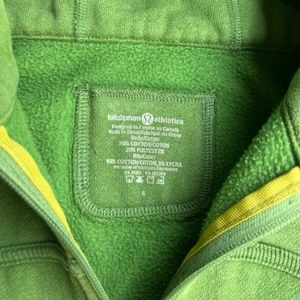 Lululemon Scuba Full Zip Hoodie in a size 6 in a beautiful vibrant green color. This is the older style of the hoodie and it is a little bit shorter, however it is definitely not a crop hoodie. It is in a good condition and still has a lot of life in it.