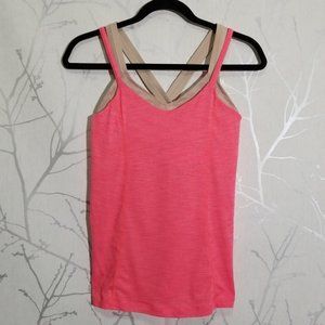 Lululemon Heathered Coral Strappy Run For Gold Tank w/ Built In Bra