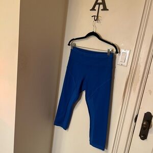 Stylish blue athletic capris by Lululemon. Perfect for workouts.