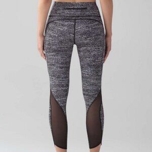 Lululemon High Rise Pace Perfect Tight with mesh size 10. The material is lightweight Full On Luxtreme. Excellent used condition, no flaws. Waist 14", rise 10", inseam 24".