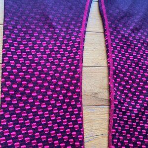 Genuine Lululemon full-length leggings in a gorgeous purple-to-pink ombré geometric checkered pattern. Features include a high-rise waistband, flatlock seams for comfort, and the Lululemon reflective logo on the back. The fabric has that soft, stretchy performance feel Lululemon is known for—perfect for yoga, gym, or everyday wear.