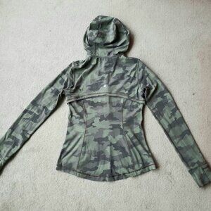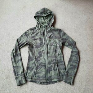 Excellent condition, no flaws, Lululemon Hooded Define Jacket Nulu in Heritage 365 Camo Green Twill Multi, size 8, from pet and smoke-free home