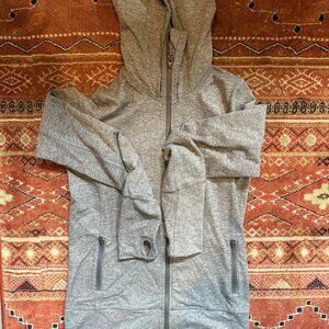 Very soft. Lululemon Women's Heathered Medium Grey Stride Jacket Hoodie. Size 6. No stains or rips and zippers have no issues. Like new as hardly worn.