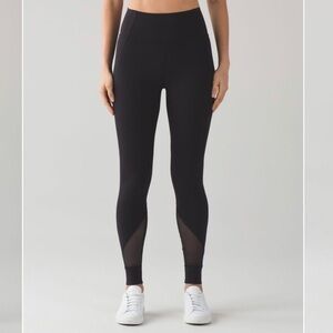 Sleek and stylish black leggings with mesh panels for a modern look. Perfect for workouts or casual wear.