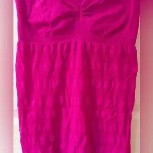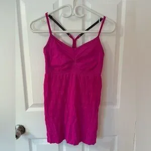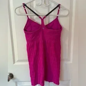 Vibrant pink Lululemon stretchy tank top with spaghetti straps and built in bra!