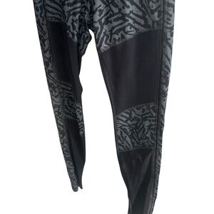 Elevate your activewear with these Lululemon Hot To Street leggings, featuring a striking black and grey leopard print and mesh details. These versatile leggings provide breathability and a chic look, perfect for your workout sessions or casual days out.