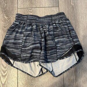 Lululemon Hotty Hot Short II (Long 4")Low Tide Alpine White Black / Black