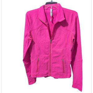 Lululemon Hustle in Your Bustle Jacket in solid pink with a full zip-up design and zippered pockets.