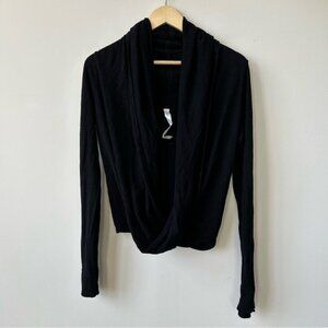 wear this wrap long and open in the front or flip it upside down for a cropped fit