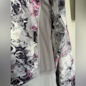 Experience the perfect blend of style and comfort with the lululemon athletica bomber jacket. This chic piece features a stunning watercolor floral design in pink and gray hues, offering a modern and feminine touch. Crafted with lightweight fabric, it's ideal for spring or summer wear, while the fitted cuffs and hem provide a classic bomber silhouette.