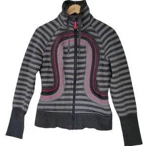 Lululemon In Stride Jacket in Grey Parallel Stripe Pink Stitch RARE
