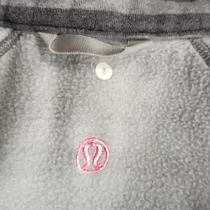 Grey stripes with thick pink stitching and pink zipper pull. Thumbholes. This is a rare and hard to find piece!