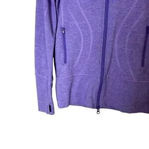 Please note the stock photos shown are a different color. This jacket is a heathered purple, not heathered blue.
