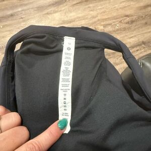 This fitted tank top from Lululemon Athletica features a sleek, sleeveless design in a versatile black color. Crafted with a smooth fabric, it offers a comfortable and stylish fit, making it an essential addition to any wardrobe.