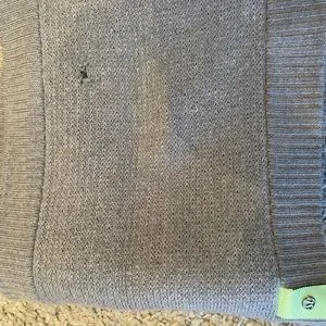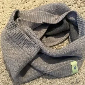 Lululemon grey infinity scarf, wool with neon green tag. There’s a small hole on the front and pull in back as seen in pictures.