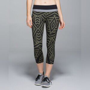 Lululemon Inspire Crop Chevron Shuffle Fatigue Green Cropped Leggings Yoga Gym
