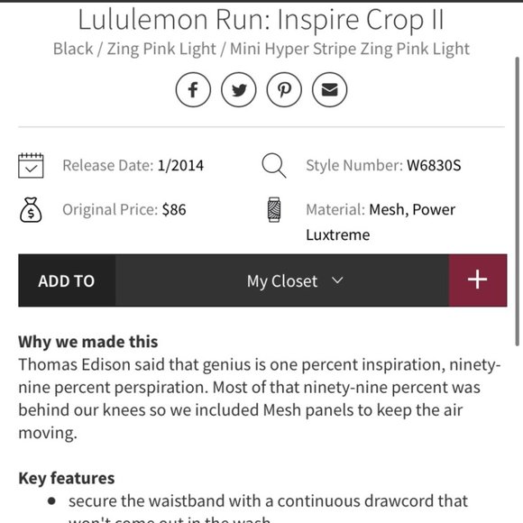 Lululemon Inspire Crop Leggings Tight Run 6 M