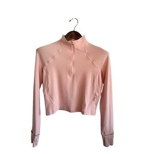 Barely worn- Super cute Lululemon It’s Rulu Ribbed Cropped Half Zip in the pretty Strawberry Milkshake color. This cropped, ribbed style is made from soft, warm Rulu fabric that wicks sweat and feels cozy. Features a half-zip front, stand collar, thumbholes (or cuff details for warmth), and that flattering slim/cropped fit – great for layering under jackets, workouts, or casual outfits.