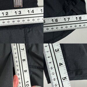 Lululemon Ivivva Black Relay Racer Athletic Running Shorts in Girls Size 14 (but would also fit a women's size 4). Designed in Vancouver. Made in Philippines. Style # IG7226S. Body is 100% polyester. Back panel is nylon and lycra elastane. Back zippered pockets. Has air vents for breathability. Drawstring waist. Lined. The longer length shorts with back venting were designed to help keep her cool when she needs hits her stride. Made with sweat-wicking, quick-drying, and two-way stretch Swift fabric. Luon waistband has lycra fibre for shape retention. Customize the fit with the continuous drawcord. Coolmax liner is soft and sweat wicking. Back zipper pocket to store essentials. Great pre-owned condition. Please review all photos.