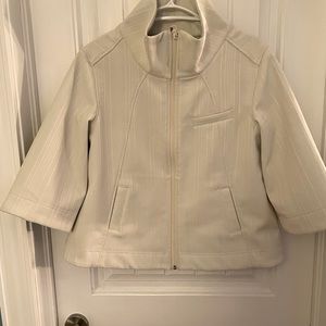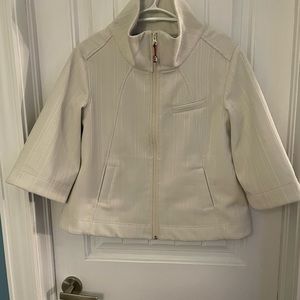 Off white, 3/4 length sleeve Lululemon jacket. Mint condition only worn a few times. A few small spots on the back and a little stained around the bottom but very hard to see. Beautiful jacket. Size 10