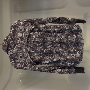 Brand new Lululemon windbreaker. Gorgeous black and white floral pattern. Size 4. Sleeves have thumbholes, hood is tucked away neatly inside the collar.