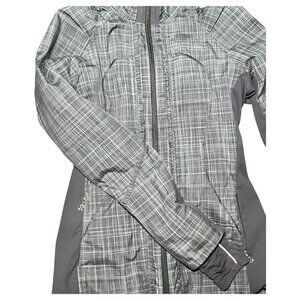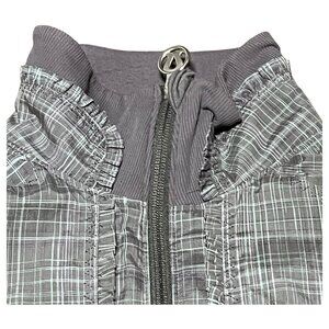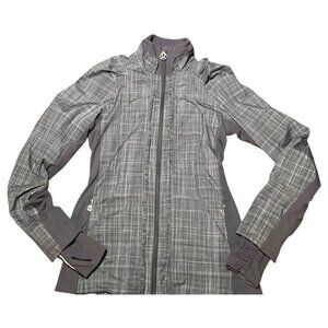 Lululemon Jacket Womens Sz 4 Gray Plaid Ruffle Pockets Logo Ahead Of The Curve