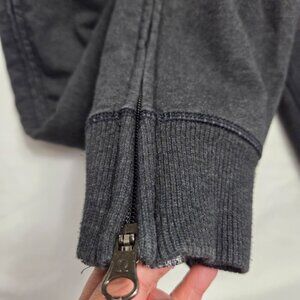 Stylish charcoal jogger sweatpants with drawstring waist and side pockets. Four way stretch Rulu. Size 8 Wide waistband with drawstring. Two front pockets Classic tapered jogger fit with zipper on the sides that reach up to the waist band. Condition: minor signs of use, no visible flaws. Please see approximate measurements. Length 35 inches
