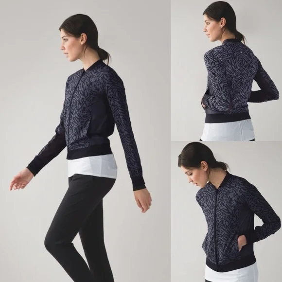 Very Excellent condition Lululemon Noir Jacket II in biggie brushed animal coal black / black.