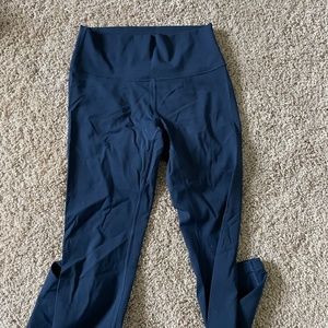 Size 8 Lululemon leggings, tag is missing, but were only worn once or twice, navy color, full length leggings