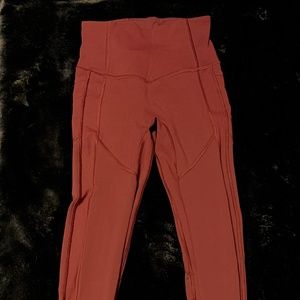 Lululemon Luxtreme Leggings ALL IN THE RIGHT PLACES II 28' perfect condition worn once, the first picture shows the true colour of the pants they are wine red has front pocket and side pockets perfect for running, 69% nylon and 31%lycra