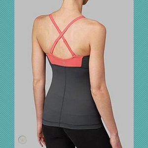 Lululemon Gray & Coral Luxtreme Ruched Front Strappy Happy Heat Tank