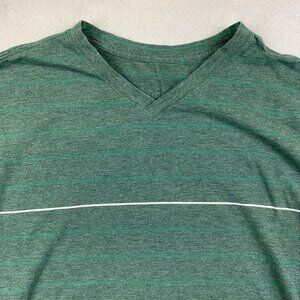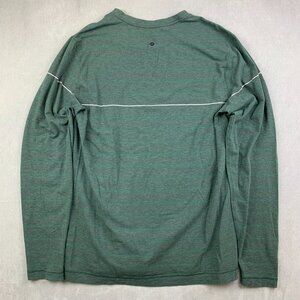 Lululemon Mens Shirt Medium Green Striped V-Neck Long Sleeve Performance Stretch