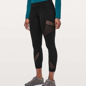 Stay cool during your practice in these high-rise crops with curved lines and two different kinds of Mesh fabric panels for ventilation.