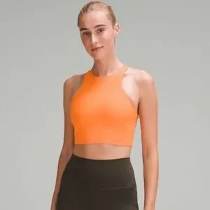 Lululemon mesh-back train bra, medium support, A/B cup. Orange Frappe. Size 6. Never worn.