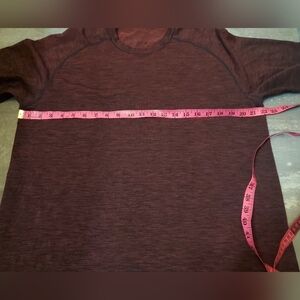 Lululemon Metal Vent tech short sleeves top. Heathered dark red and black. Size XL, see pictures for measurements. Excellent condition. Just a small pulled thread inside the shirt at the top; Can't be seen from the outside. No stain, no rip. Non smoking house.