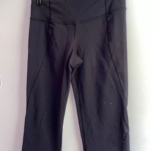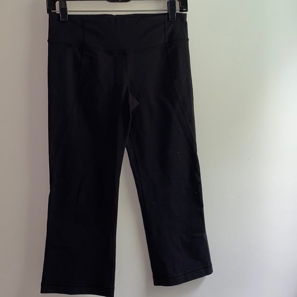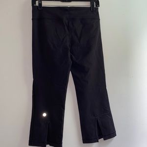 Great condition, midrise black split hem Lululemon capris, Size 4.