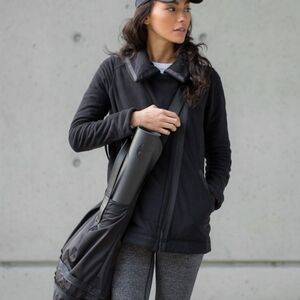 Hardcore just got a whole lot warmer - and more comfortable. We designed this long, loose fitting jacket to keep us cozy on our way to and from the studio. Made of soft Fleece fabric, it has an asymmetrical zipper and wide collar to help lock in heat. A hidden pouch in the secure zippered pocket is the perfect place to stash our phone so that we can grab our jacket and our essentials and hit the road.