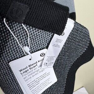 Lululemon NEW Logo Knit Merino Wool Scarf Wrap Long Cozy Warm Rare Black Gray