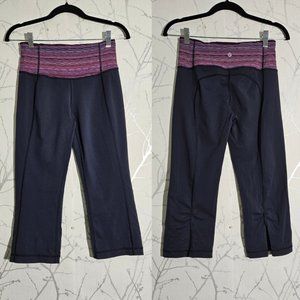 Lululemon Navy & Pink Luon Mid Rise Split Calf Gather & Crow Crop
