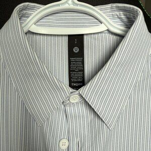 Lululemon New Venture Classic Fit LS Shirt ISWB Blue/White Thin Stripe