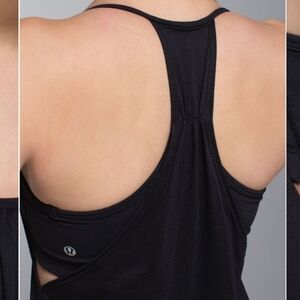 Lululemon No Limit tank. 2 in 1 tank with built in bra (non padded). Black. Size 6, see pictures for measurements. Excellent condition. No stain, no rip. Non smoking house.