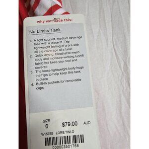 Lululemon No Limits Tank Love Red / Twin Stripe Love Red- SIZE 6- NEW with Tags