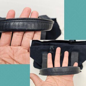 Good used condition: Minor signs of wear - there is light wear on the corners of the bottom, very minor wear on the handles, and a tiny mark on one strap. Missing the pocket for curling irons, and the little strap that keeps the handles together