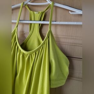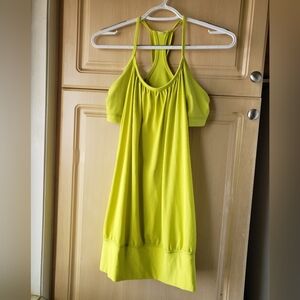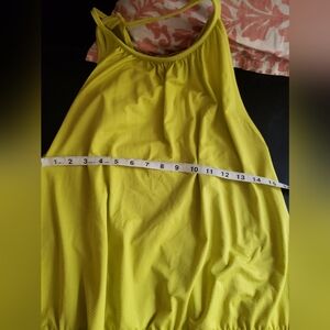 Lululemon racerback tank top in a vibrant yellow. Perfect for workouts or casual wear.